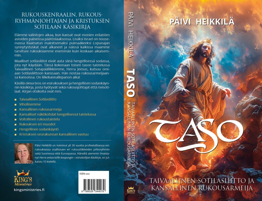 Voit tilata TASO -Taivaallinen Sotilasliitto ja Kansallinen Rukousarmeija e-kirjan Päivi Heikkilältä sähköpostitse info@kingsministries.fi lahjoitusta vastaan tilille Päivi Heikkilä FI59 4210 0010 0508 94, viestikenttään TASO. Kiitos rukouksista kirjan saamiseksi pian lukijoille painettuna!