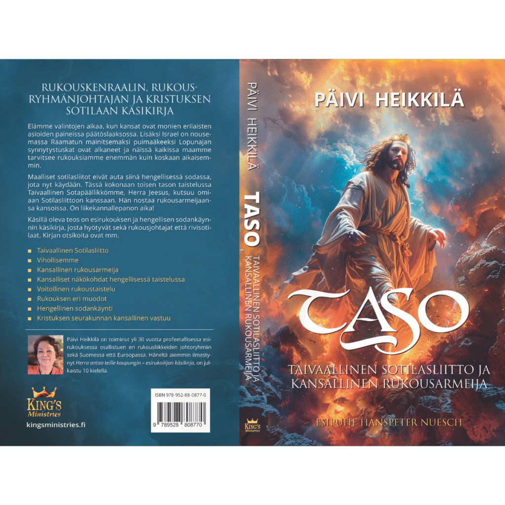 Hanspeter Nuesch, who has had an active role in founding the so called “Christ Day”, a national prayer gathering, in 17 nations, mentions in his Foreword to this book: “Reading this remarkable book several scripture verses received a new value for me in my prayer ministry to the nations. Thank you Päivi for your biblical depth. But it is obvious that this comes out of your deep relationship with the Lord and your love for Him.”
